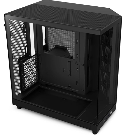 言わずと知れた大手メーカー、NZXTさんの有名ケースH6 flowです。フロントファンが斜めになっているのが特徴なピラーレスケースで、デザインがカッコいいの上にかなり組み立てやすそうだったのが決め手になりました。