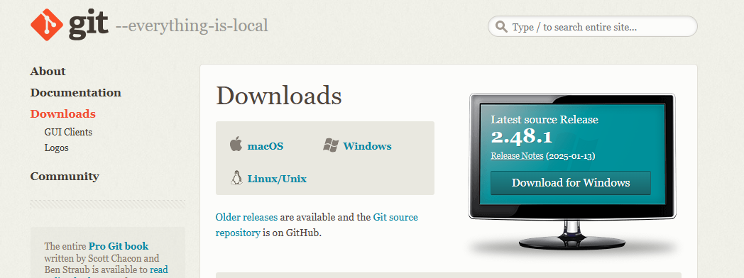 ④ダウンロードされたGit-x.xx.x-64-bit.exeを起動し、gitをインストールする。