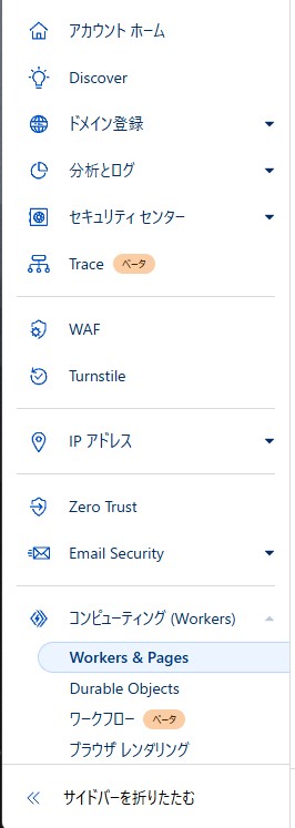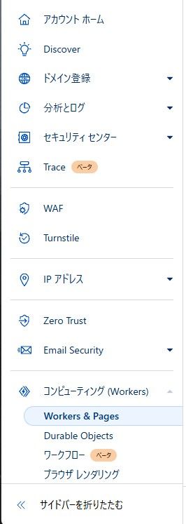 ②左側のタブから「コンピューティング」を探し、その中の「Workers&Pages」をクリックする。